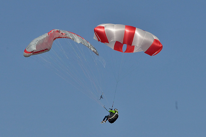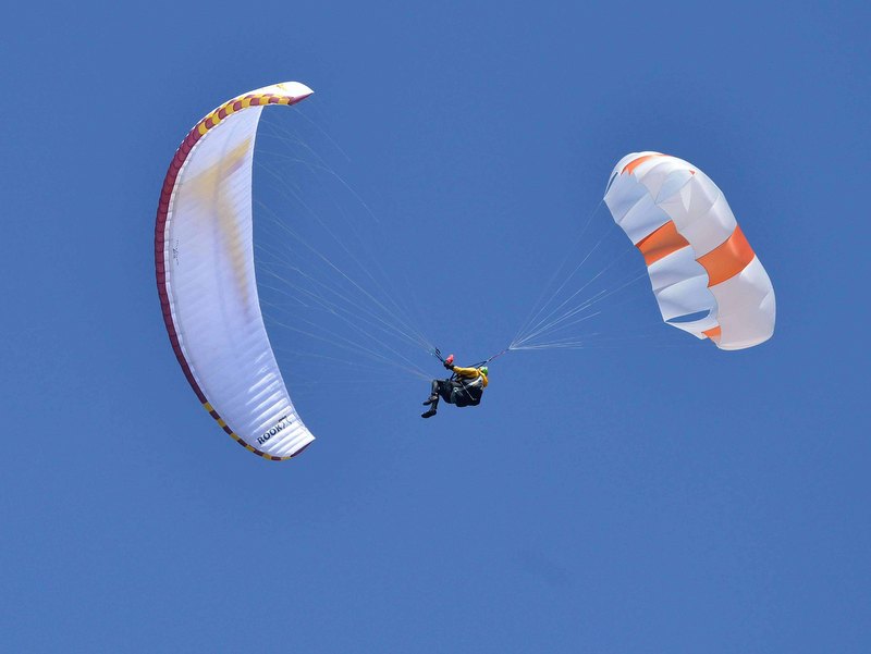 Wir haben hier nicht verschiedene Systeme zusammengefügt sondern ein komplett neues Rettungssystem entwickelt. Nicht nur die Form dieser Rettung ist neu sondern auch ihre FUNKTIONSWEISE. Direkt nach der Auslösung und dem Öffnen der Kappe sinkt die X-TRIANGLE senkrecht und generiert dabei KEINE Vorwärtsfahrt. Die Kappe ist unmittelbar nach der Öffnung VÖLLIG SYMMETRISCH. Daher gibt es bei der X-TRIANGLE KEINE VORBREMSUNG wie bei einer Rogallo.
